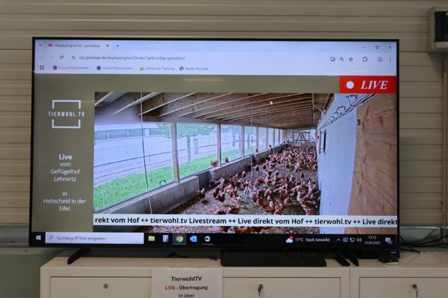 Regelmäßig streamen wir über TierwohlTV in große Supermarktketten wie REWE, EDEKA oder HIT, sodass Verbraucherinnen und Verbraucher nicht nur beim Hoffest, sondern auch täglich beim Einkauf nachvollziehen können, wie es in unseren Ställen zugeht.